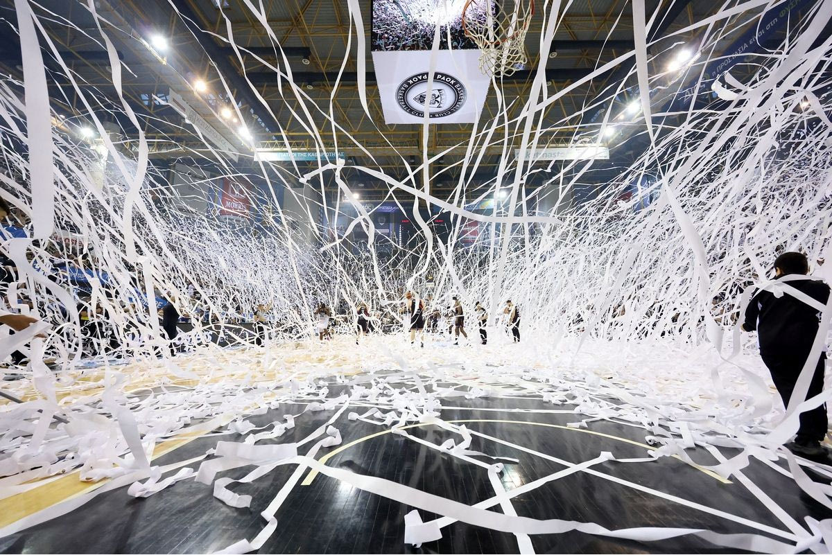 ΠΑΟΚ – Μπιλμπάο: Απίθανες εικόνες από τo “Παλατάκι” με λευκά ρολά που κάλυψαν το παρκέ, φαντασμαγορική ατμόσφαιρα από τον κόσμο