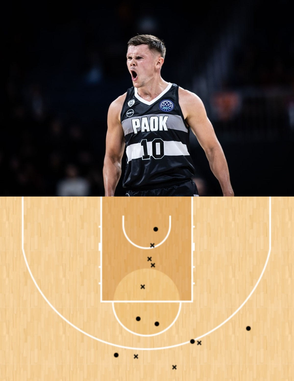Πέρα από τα μεγάλα σουτ που σημείωσε βέβαια, την διαφορά στην περίπτωση του Ισλανδού έκαναν οι 10 ασίστ που μοίρασε. Σύμφωνα με το Hudl Instat, από αυτές τις 10 ασίστ ο ΠΑΟΚ πήρε άλλους 21 πόντους. Κοινώς, ο Φρίντρικσον ήταν υπεύθυνος για τους 40 από τους 88 πόντους του “Δικεφάλου”, κάτι που μεταφράζεται σε ποσοστό 45% των πόντων της ομάδας του!