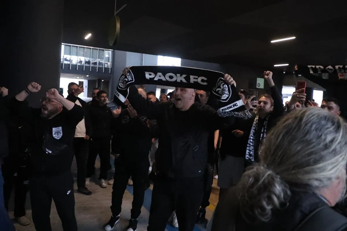 Πολλοί ήταν οι φίλαθλοι του ΠΑΟΚ που βρέθηκαν στο αεροδρόμιο “Μακεδονία” για να υποδεχθούν με θερμό τρόπο την αποστολή και να την αποθεώσουν, φωνάζοντας το σύνθημα: “Φέρτε μας το ευρωπαϊκό”.