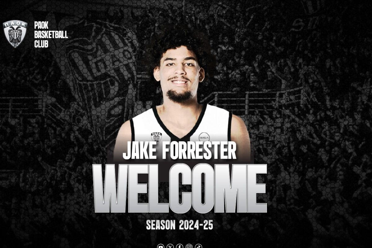 “Η ΚΑΕ ΠΑΟΚ mateco ανακοινώνει την συμφωνία με τον Αμερικανό καλαθοσφαιριστή Jake Forrester, ο οποίος θα αγωνιστεί στην ομάδα μας την αγωνιστική περίοδο 2024-25. Καλωσορίζουμε τον Jake στη μεγάλη οικογένεια του ΠΑΟΚ.