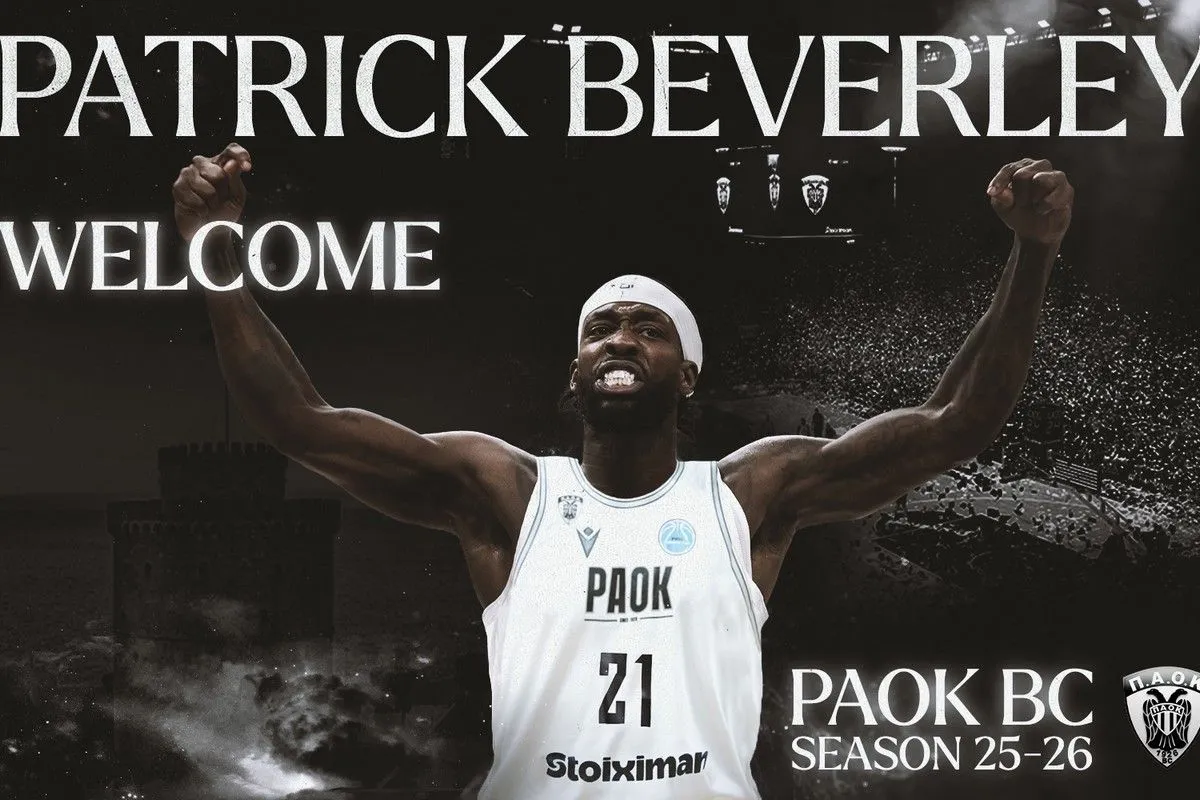 Η ΚΑΕ ΠΑΟΚ ανακοινώνει τη συμφωνία με τον Αμερικανό καλαθοσφαιριστή Patrick Beverley, ο οποίος θα ενισχύσει την προσπάθεια της ομάδας μας μέχρι το τέλος της αγωνιστικής περιόδου 2025-26.