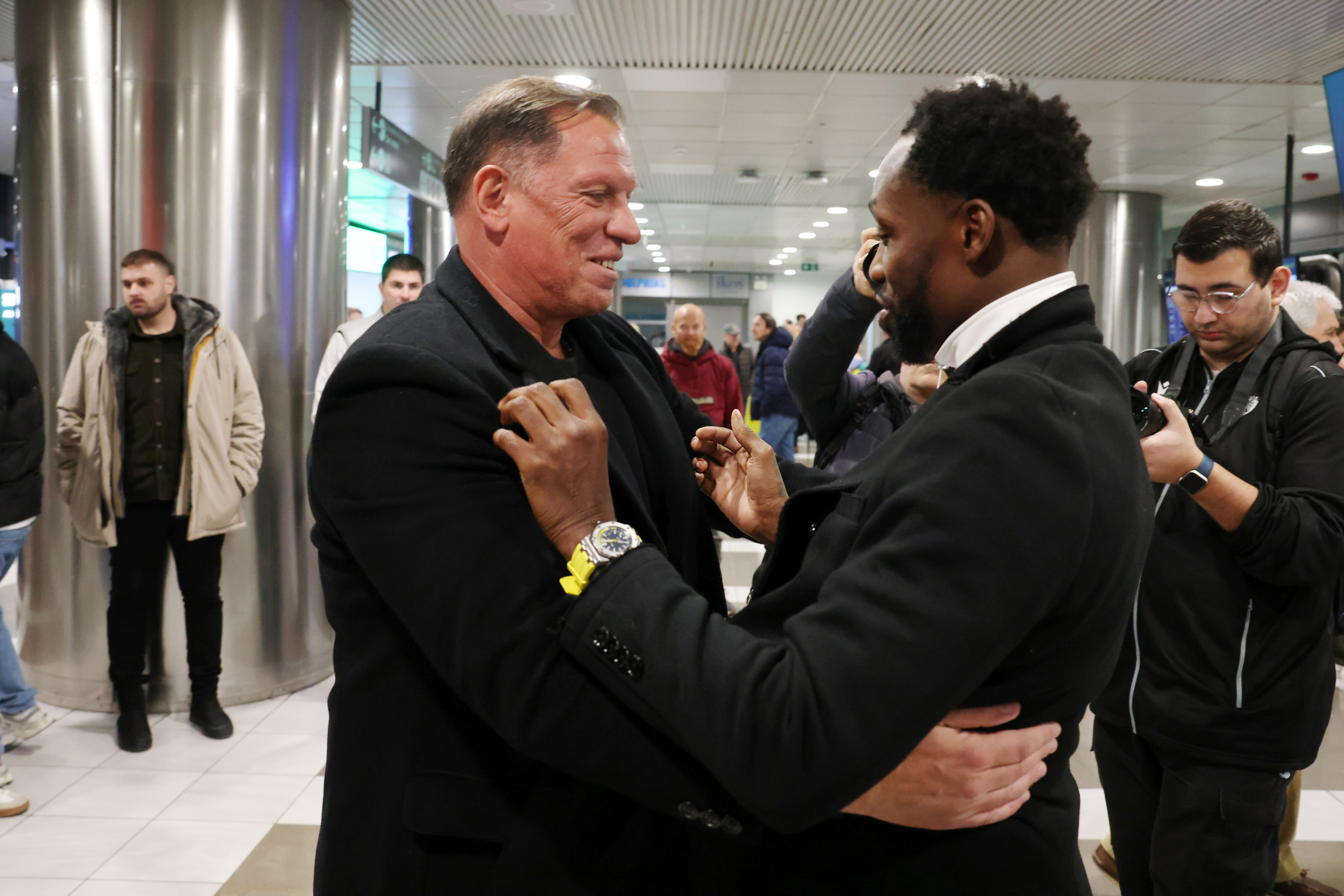 Εκεί τον υποδέχθηκε ο Νίκος Μπουντούρης, General Manager της ΚΑΕ, μαζί με τον Αναπληρωτή Πρόεδρο Γιάννη Πετμεζά και το μέλος του Δ.Σ. Βαγγέλη Τσακμακά.