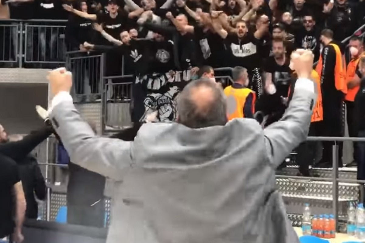 Αποθέωση για τον ΠΑΟΚ μετά την νίκη επί της Νίμπουκ για το Basketball Champions League, αποθέωση και για τον πρόεδρο της ΚΑΕ, Θανάση Χατζόπουλο, που έδωσε το σύνθημα και τραγουδούσε μαζί με τους οπαδούς της ομάδας.