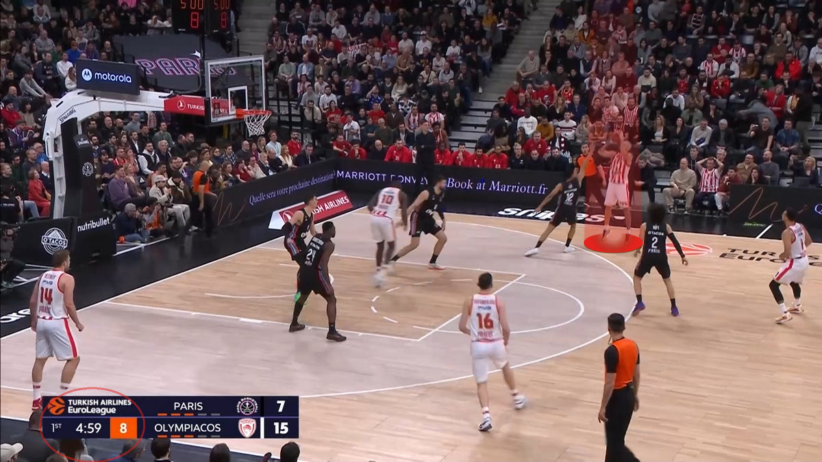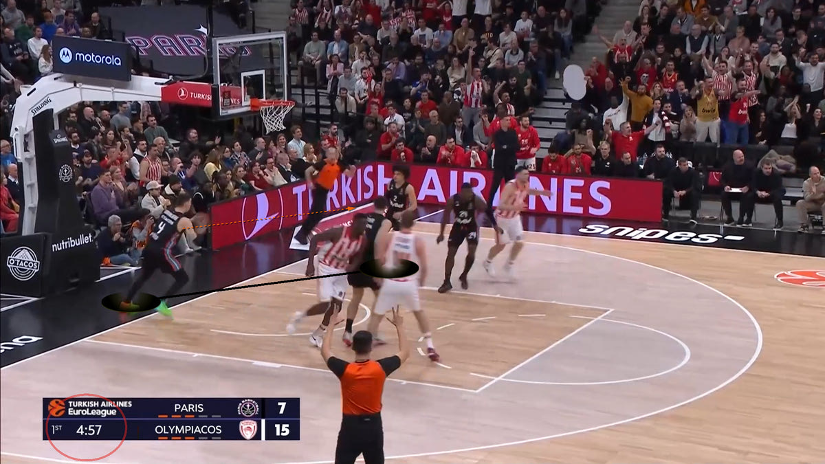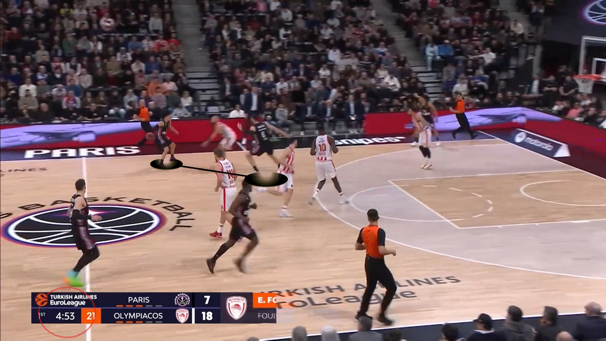 Ο Ολυμπιακός είχε τις επιστροφές που έπρεπε. Έβγαλε φάσεις που έδειξαν πόσο συγκεντρωμένος ήταν και στις δύο πλευρές του παρκέ για να κόψει την φόρα της Παρί. Ιδού ένα παράδειγμα:
