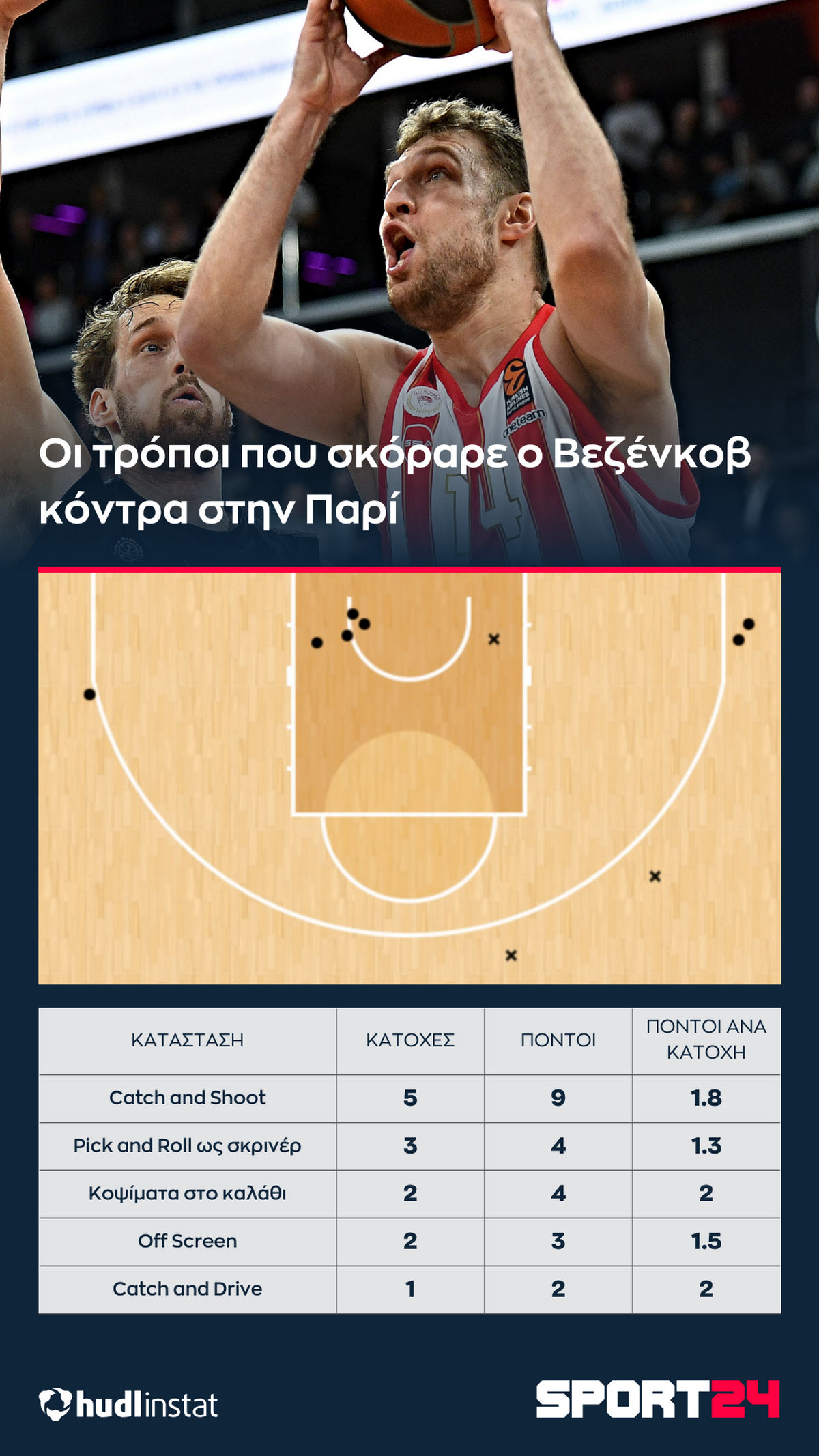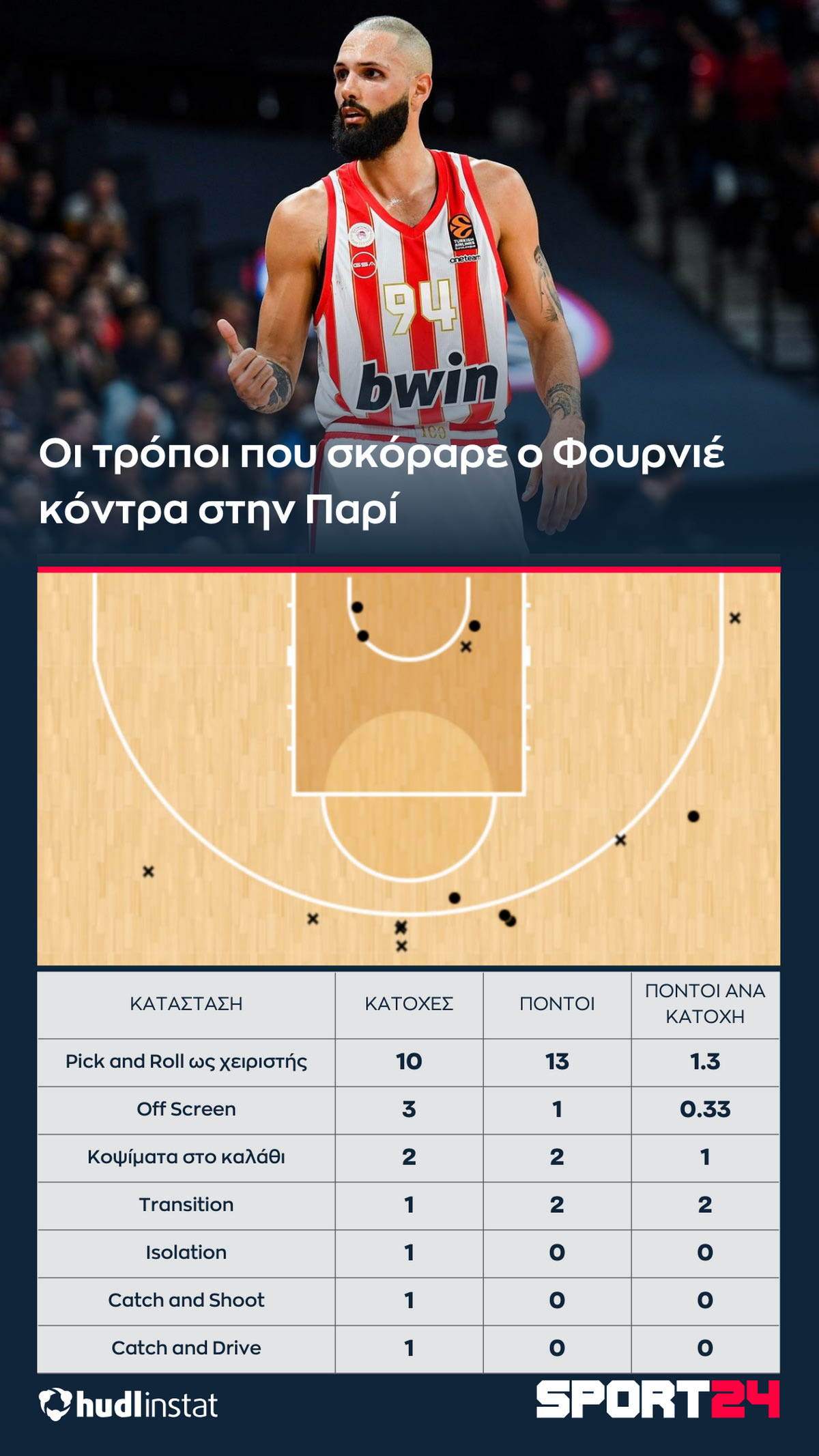 Ο Στέφανος Μακρής αναλύει με την βοήθεια του Hudl Instat τη νίκη του Ολυμπιακού επί της Παρί. Ο αριθμός που δείχνει ότι ο Ολυμπιακός έπαιξε στο δικό του τέμπο με εκτελεστές τους Βεζένκοβ-Φουρνιέ, ο τρομερός Γουίλιαμς-Γκος που είχε το απίθανο +24 στο +/- και οι ασίστ του Παπανικολάου που δείχνουν πολλά.