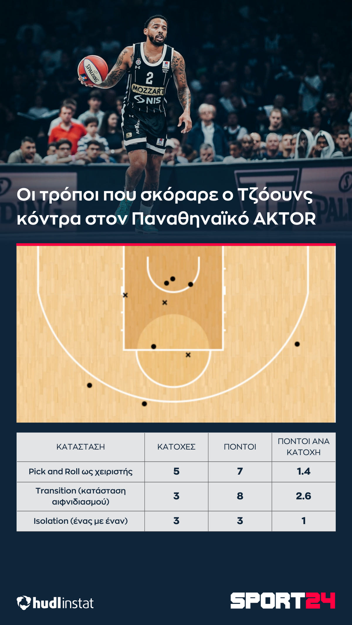 Παρτίζαν – Παναθηναϊκός AKTOR: Ο τρελός ρυθμός του Τζόουνς, που χτύπησε την αδυναμία των “πρασίνων” και η πεντάδα που κλείδωσε το ματς