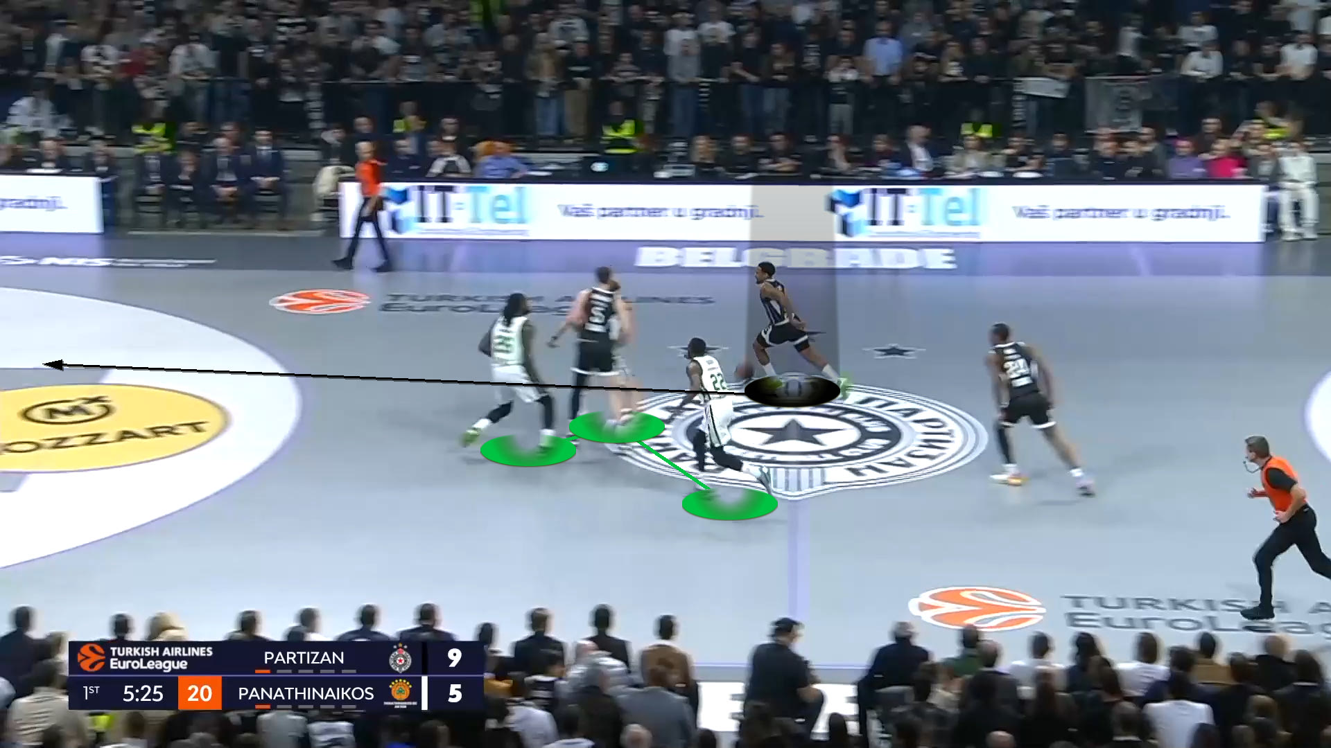 Η Παρτίζαν επιτέθηκε στην πρώτη γραμμή άμυνας του Παναθηναϊκού AKTOR όλο το βράδυ. Σύμφωνα με το Hudl Instat, οι Σέρβοι σημείωσαν συνολικά 38 πόντους στα πρώτα 10 δευτερόλεπτα των επιθέσεών τους. Αυτό αντιπροσωπεύει το 41% των πόντων της.