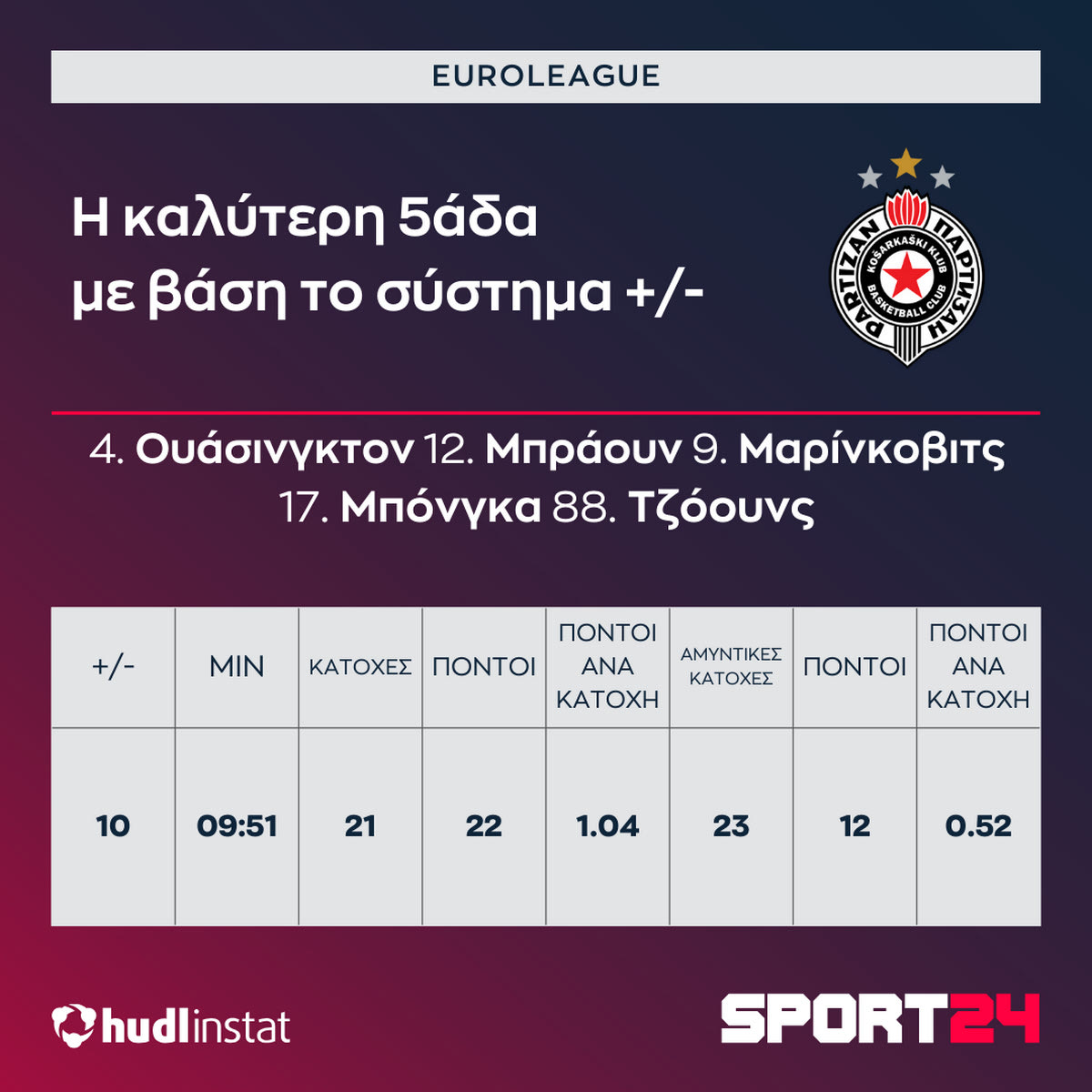Ο Στέφανος Μακρής αναλύει με την βοήθεια του Hudl Instat την ήττα του Παναθηναϊκού AKTOR από την Παρτίζαν. Η άμυνα των Σέρβων που βραχυκύκλωσε τους “πράσινους”, οι 38 πόντοι των Σέρβων στα πρώτα 10 δευτερόλεπτα της επίθεσης και το φινάλε της 2ης περιόδου που άλλαξε τα δεδομένα.