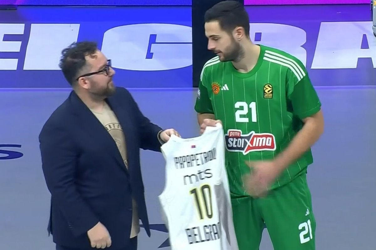Η Παρτίζαν δεν ξέχασε την προσφορά του Ιωάννη Παπαπέτρου στον σύλλογο και έδωσε μία φανέλα στον νυν παίκτη του Παναθηναϊκό AKTOR, πριν το τζάμπολ του αγώνα των δύο ομάδων.