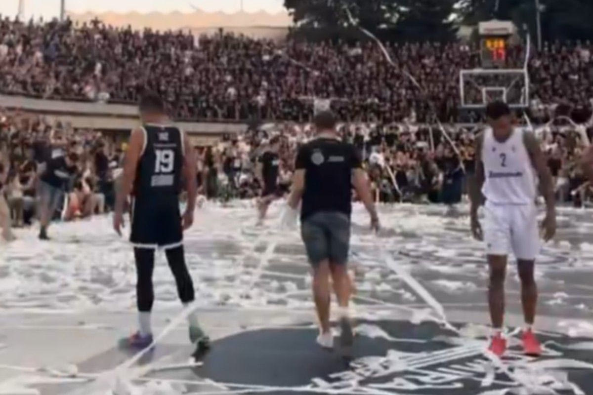 Συγκεκριμένα, από τα μεγάφωνα ακούστηκε γνωστό σύνθημα της ασπρόμαυρης εξέδρας, με τον κόσμο να τραγουδά. Με το τζάμπολ του αγώνα χαρτάκια έπεσαν στον αγωνιστικό χώρο, με την ατμόσφαιρα να είναι θερμή.