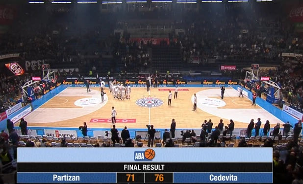 Έπειτα από 20λεπτη διακοπή ολοκληρώθηκε το μεγάλο ντέρμπι της Αδριατικής Λίγκας μεταξύ της Παρτιζάν και της Τσεντεβίτα, με αφορμή την ρίψη αντικειμένων προς τους παίκτες των φιλοξενούμενων (VIDEO).