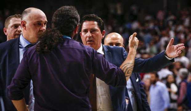 ” Η νίκη γλίστρησε από τα χέρια μας στα τελευταία λεπτά. Ήταν ένα πολύ δυνατό παιχνίδι, παρότι στο β’ και το γ’ δεκάλεπτο χάσαμε τον έλεγχο. Ξέραμε πώς να γυρίσουμε στο παιχνίδι. Η νίκη γλίστρησε από τα χέρια μας, αλλά η ουσία δεν αλλάζει: η Ρεάλ Μαδρίτης είναι στο 2-1 και θα πρέπει να προετοιμαστούμε για την Παρασκευή“, ενώ σε ερώτηση για το κίνητρο που μπορεί να δώσει στους παίκτες του εν όψει της τέταρτης αναμέτρησης με τη “Βασίλισσα”, απάντησε πως ” το κίνητρο βρίσκεται στα ύψη επειδή παίζουμε για την πρόκριση στο Final Four“.