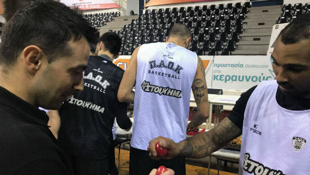 Ο Αντώνης Κόνιαρης (κρύωμα) για προληπτικούς λόγους δεν προπονήθηκε,εν ά ατομικό πρόγραμμα ακολούθησε ο Δημήτρης Καραμανώλης, ο οποίος ταλαιπωρείται από τενοντίτιδα. Το πρόγραμμα του “Δικεφάλου” περιελάμβανε μία πρώτη ανάλυση της ΑΕΚ με την χρήση video, ενώ ακολούθησε προπόνηση στην κεντρική σάλα της PAOK Sports Arena.
