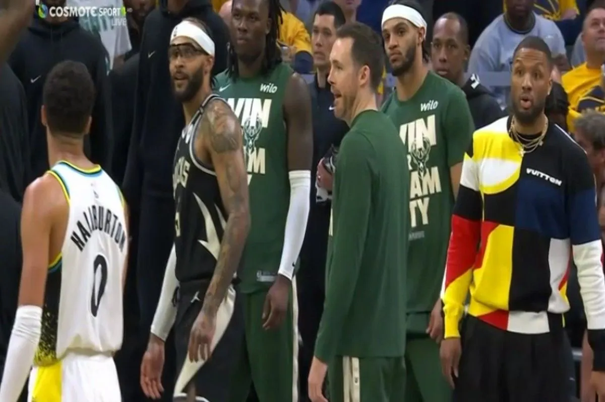Ντέιμιαν Λίλαρντ και Ταϊρίς Χαλιμπάρτον λογομάχησαν κατά τη διάρκεια διακοπής για φάουλ του Γιάννη Αντετοκούνμπο στον Χαλιμπάρτον. Ο σούπερ σταρ της Ιντιάνα βρέθηκε στη γραμμή των βολών, ο Λίλαρντ τού απευθύνθηκε και, όταν οι διαιτητές πήγαν να εξετάσουν τη φάση μετά από challenge του Ντοκ Ρίβερς, άναψαν τα αίματα.