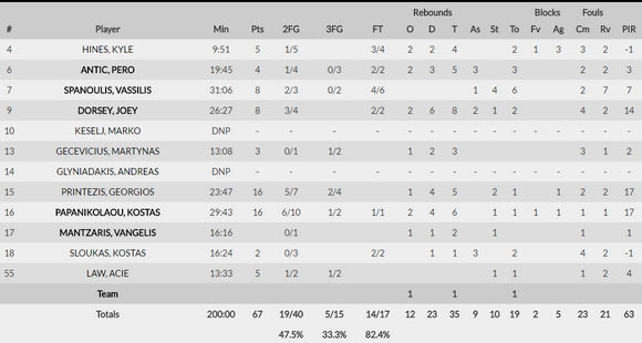 Τα στατιστικά των παικτών του Ολυμπιακού σε εκείνο το ματς