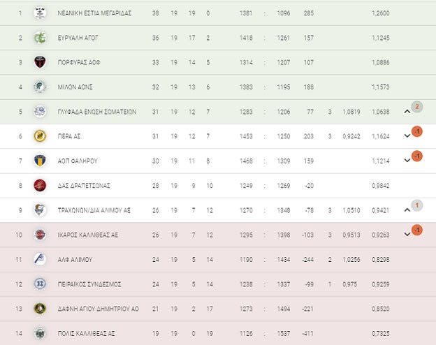 Στο μεταξύ, η μάχη εξακολουθεί να μαίνεται στην κούρσα για τα πλέι οφ. Στο πιο σημαντικό από τα σημερινά παιχνίδια η Γλυφάδα επιβλήθηκε του Πέρα με 67-53 και το άφησε εκτός πεντάδας, ανεβαίνοντας η ίδια μία θέση. Συν τοις άλλοις η Γλυφάδα κάλυψε και τη διαφορά των τεσσάρων πόντων με την οποία είχε ηττηθεί στον πρώτο γύρο, αποκτώντας σημαντικό πλεονέκτημα.