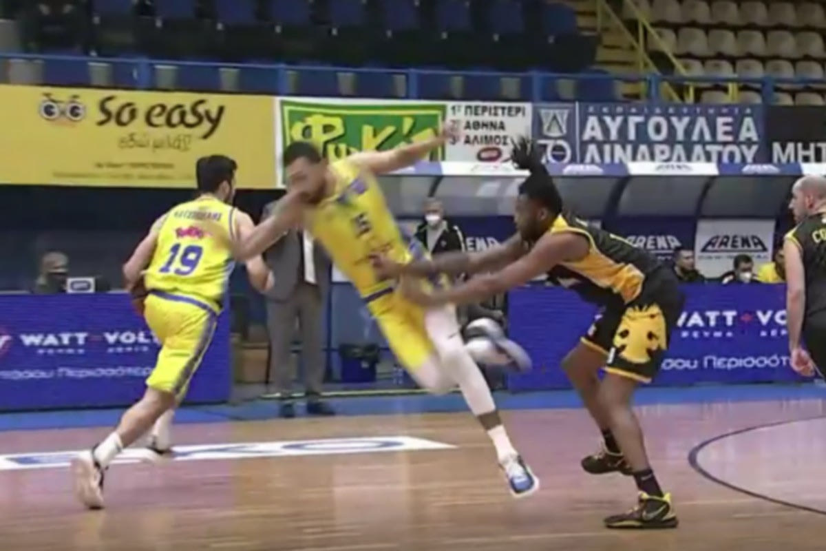 Περιστέρι – ΑΕΚ: Αποβολή με ντισκαλιφιέ για τον Γκρίφιν για σκληρό φάουλ στον Χρυσικόπουλο