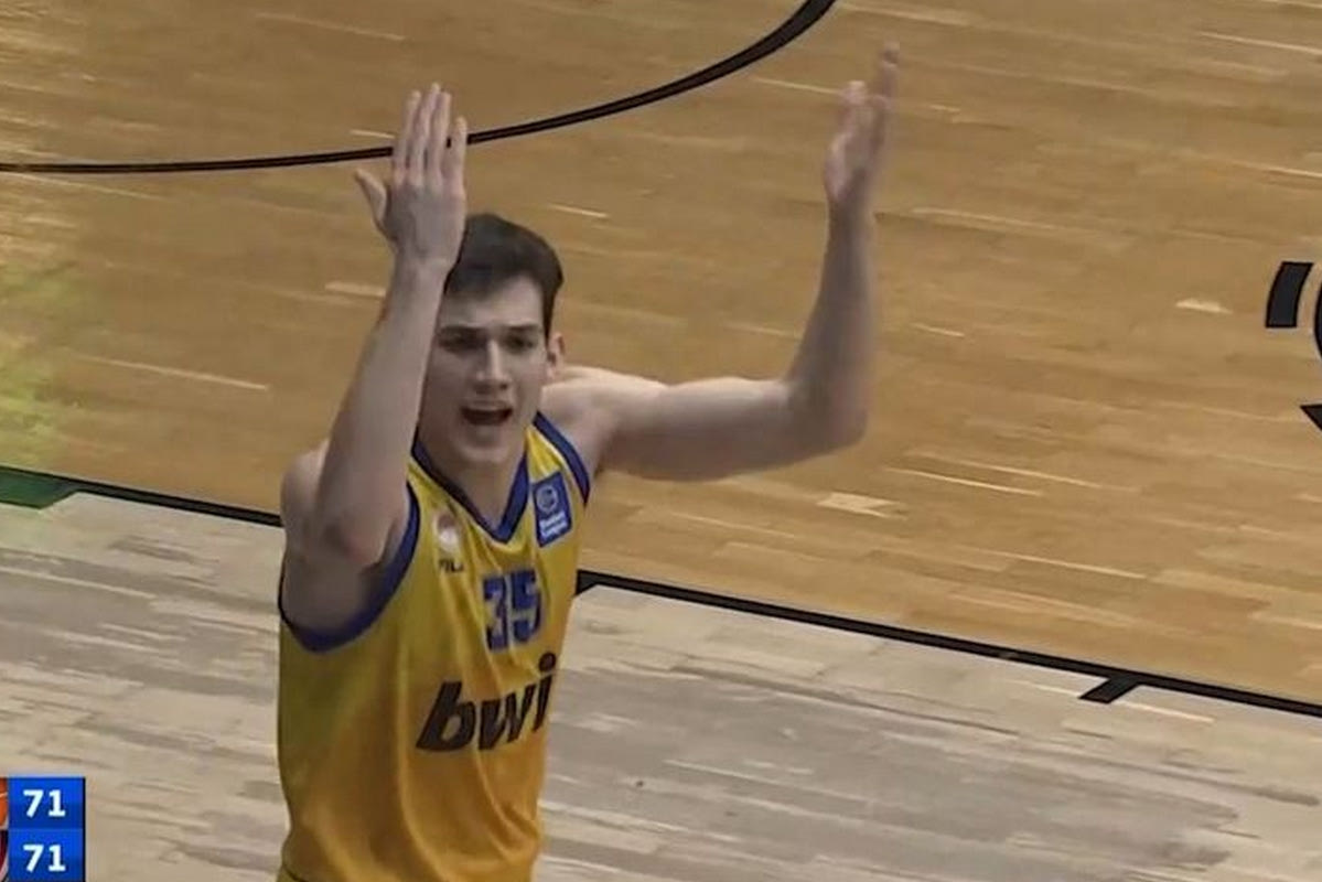 Ο Βαγγέλης Ζούγρης κέρδισε το επιθετικό φάουλ από τον Ταρίκ Μπλακ σε κρίσιμο σημείο, πανηγυρίζοντας έξαλλα για την άμυνα που έβγαλε -έστω κι έτσι- με το Περιστέρι bwin.