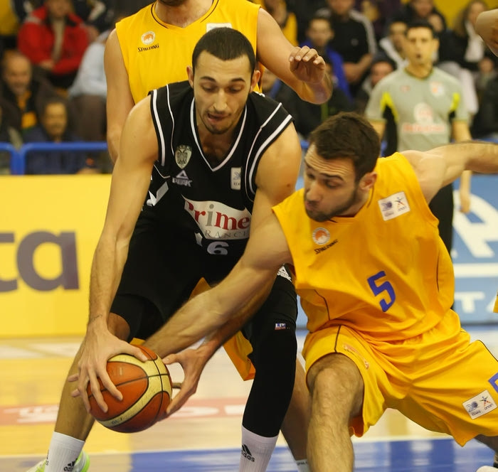 Ο Παπαντωνίου με δύο εύστοχες βολές έκανε το 28-29 και ο Τσαϊρέλης με 1/2 βολές σημείωσε το 28-30, στο 17ο λεπτό του αγώνα. Ο Χαραλαμπίδης με 1/2 βολές έκανε το 28-31 και ο Μάντζαρης μείωσε σε 30-31. Ο Χαραλαμπίδης με δύο εύστοχες βολές πέτυχε το 31-33, σκορ με το οποίο πήγαν οι δύο ομάδες στα αποδυτήρια.