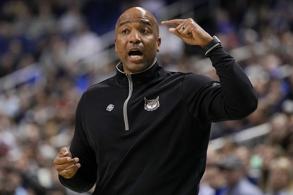 Kennesaw State head coach Amir Abdur-Rahim yells during the first half of a first-round college basketball game against Xavier in the NCAA Tournament on Friday, March 17, 2023, in Greensboro, N.C. (AP Photo/Chris Carlson)