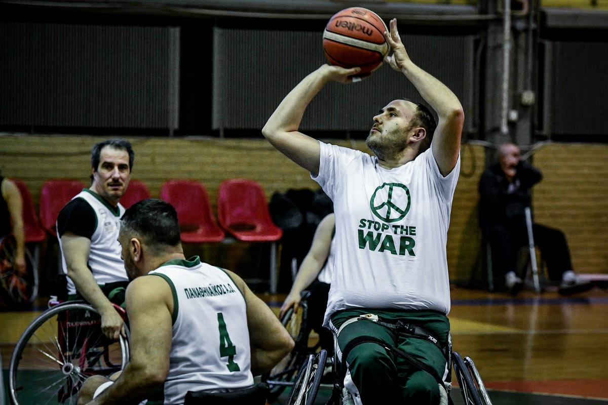 Πόλεμος στην Ουκρανία: Με μπλουζάκια “stop the war” οι παίκτες της ομάδας μπάσκετ με αμαξίδιο του Παναθηναϊκού