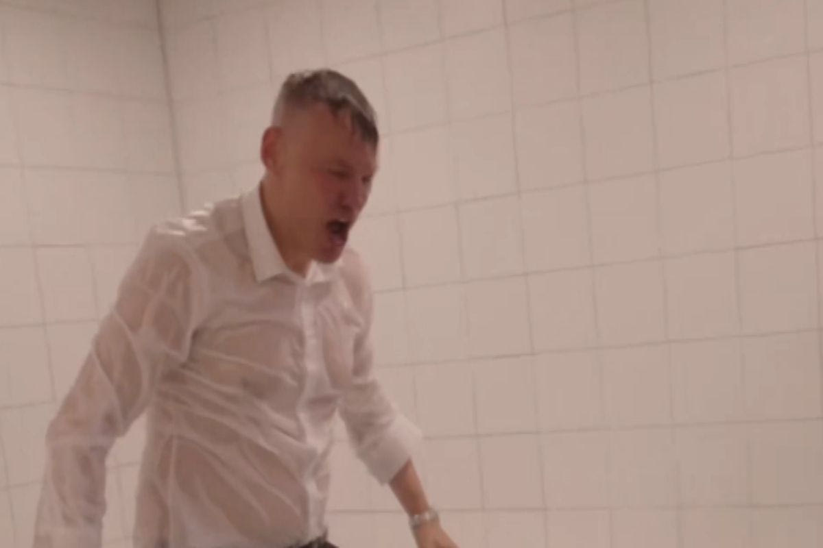 Συγκεκριμένα, ο Λιθουανός προπονητής σχολίασε βλέποντας ξανά το βίντεο: “Είναι μετά το Game 3, οι πανηγυρισμοί. Περίμενα ότι θα βραχώ, αλλά δεν ήξερα ότι είχαν ένα παγωμένο τζακούζι εκεί πίσω. Νόμιζα ότι είναι μια εξαιρετική στιγμή και νομίζω ότι ήταν μια ευκαιρία για αυτούς (τους παίκτες) να μου επιστρέψουν όλη τη δουλειά που τους έβαλα να κάνουν μέσα στη σεζόν.