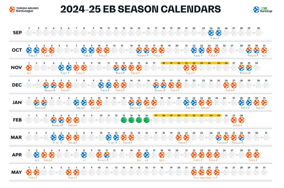 Οι μέτοχοι συζήτησαν και για το καλεντάρι της νέας σεζόν, η οποία θα ξεκινήσει την Πέμπτη 3 Οκτωβρίου, εννέα ημέρες μετά από την έναρξη της σεζόν στο EuroCup, με τη EuroLeague Basketball να ανακοινώνει πως θα υπάρξει για δεύτερη συνεχόμενη σεζόν διακοπή τον Φεβρουάριο για τους αγώνες των εθνικών ομάδων. “Οι σύλλογοι εκτιμούν τις συνομιλίες με τη FIBA, οι οποίες συνεχίζονται τους τελευταίους 11 μήνες. Η επίτευξη μίας ευρύτερης συμφωνίας που περιλαμβάνει και άλλα σημαντικά θέματα είναι απαραίτηση ώστε να παραμείνει αυτή η δέσμευση και στο μέλλον” αναφέρεται χαρακτηριστικά.