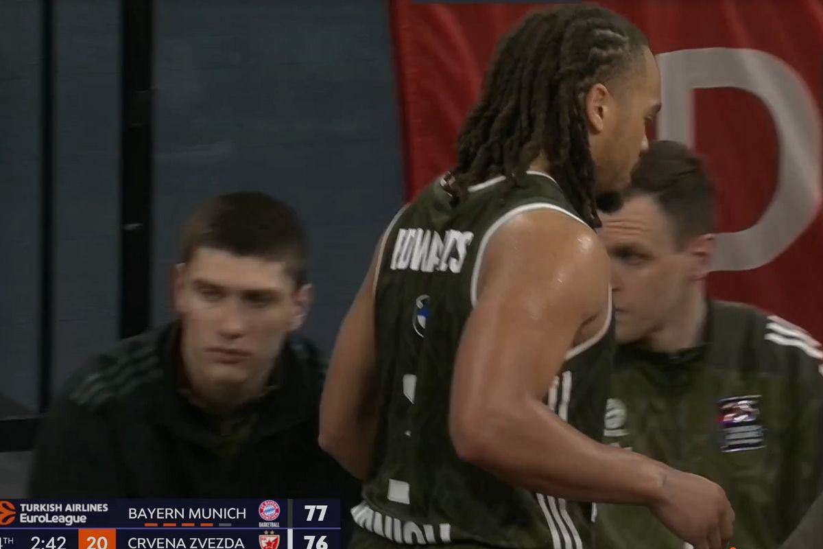 Τα τελευταία 4 περίπου λεπτά της κανονικής διάρκειας του αγώνα ο Κάρσεν Έντουαρντς φαινόταν να ενοχλείται από τη μέση του και 2’42” πριν το φινάλε ζήτησε αλλαγή και πήγε κουτσαίνοντας στον πάγκο. Η κάμερα τον έπιασε ακόμη μια φορά στον πάγκο, όπου και έδειχνε να πονάει, αλλά στο επόμενο λεπτό ο Ερυθρός Αστέρας έκανε σερί 5-0 και 1’44 για το τέλος της αναμέτρησης πέρασε μπροστά με 3 (77-80) αναγκάζοντας τον Γκόρντον Χέρμπερτ να καλέσει τάιμ άουτ.