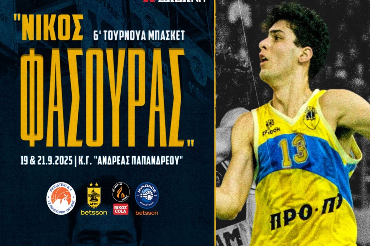 Το Περιστέρι διοργανώνει για ακόμη μία χρονιά το τουρνουά Νίκος Φάσουρας και από τις 19 ως τις 21 Σεπτεμβρίου τέσσερις ομάδες της Stoiximan GBL θα αγωνιστούν στο κλειστό “Ανδρέας Παπανδρέου”.
