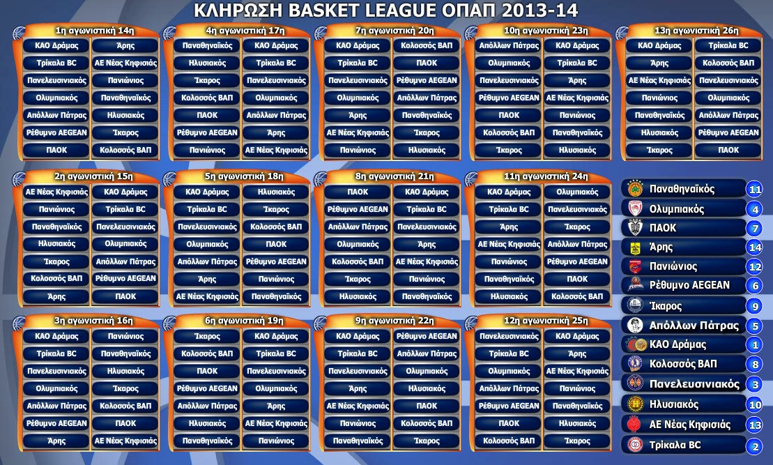 Νωρίς το ντέρμπι μεταξύ των “αιωνίων”, καθώς η κληρωτίδα έβγαλε ότι Ολυμπιακός και Παναθηναϊκός θα τεθούν αντιμέτωποι την πρεμιέρα του πρωταθλήματος της Basket League ΟΠΑΠ στις 12 Οκτωβρίου.