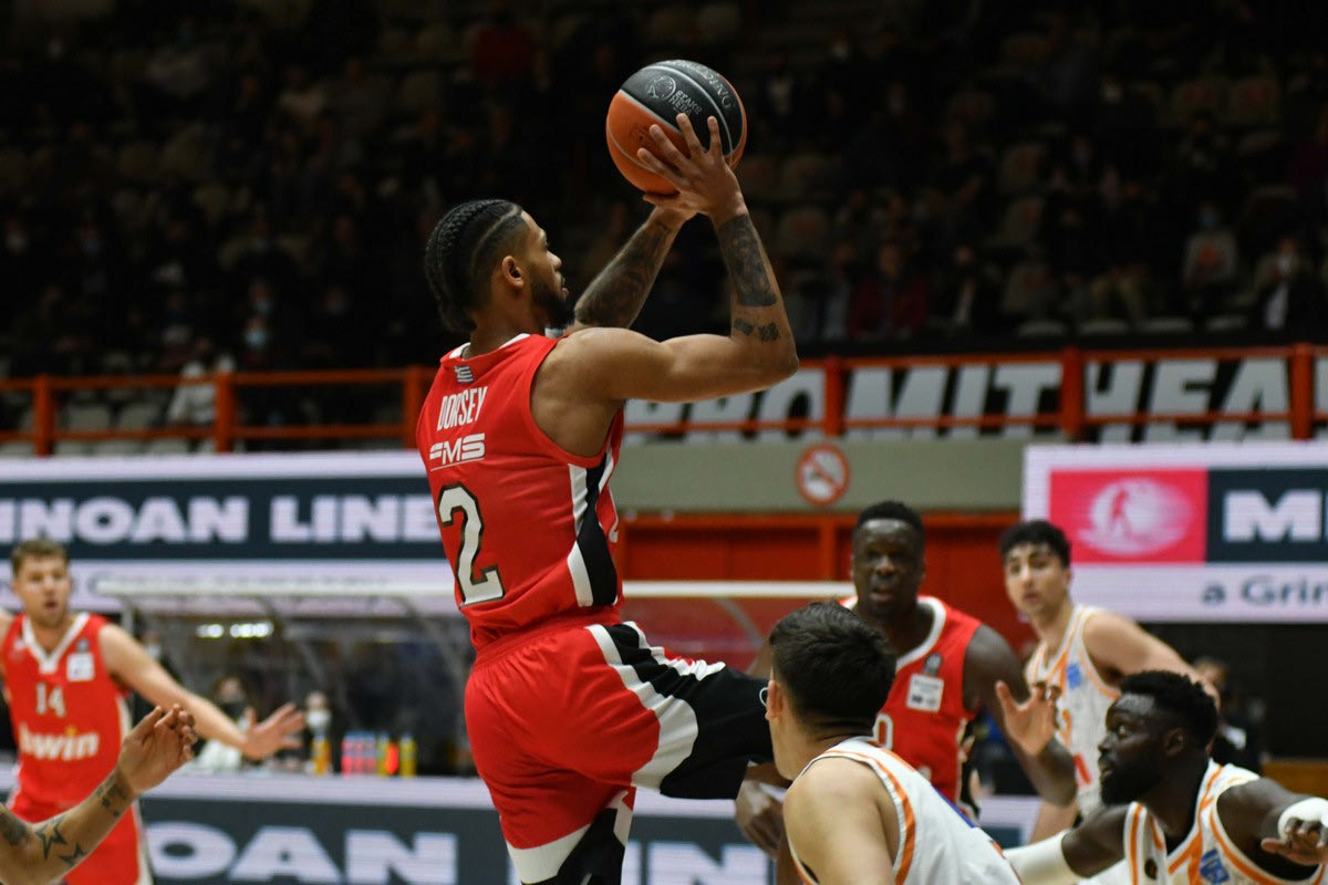 Οι ερυθρόλευκοι δεν έδωσαν περισσότερο αέρα όμως στην ομάδα του Ηλία Ζούρου, δεδομένου ότι διατήρησαν τον έλεγχο του ρυθμού και μαζί τη διαφορά ασφαλείας. Ο Τάιλερ Ντόρσεϊ βρήκε στο πρόσωπο του Σάσα Βεζένκοβ το alter ego στην επίθεση, με τους δύο παίκτες να αποτελούν τον βασικό λόγο για το +17 (44-61 στο 28′), που έγραψε επί της ουσίας τον επίλογο.