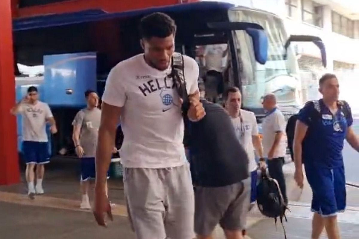 Η άφιξη της Εθνικής Ανδρών στο ΣΕΦ για το παιχνίδι με τη Δομινικανή Δημοκρατία στο πλαίσιο του Προολυμπιακού Τουρνουά του Πειραιά (21:00, ΕΡΤ1, Novasports Start και LIVE από το SPORT24).