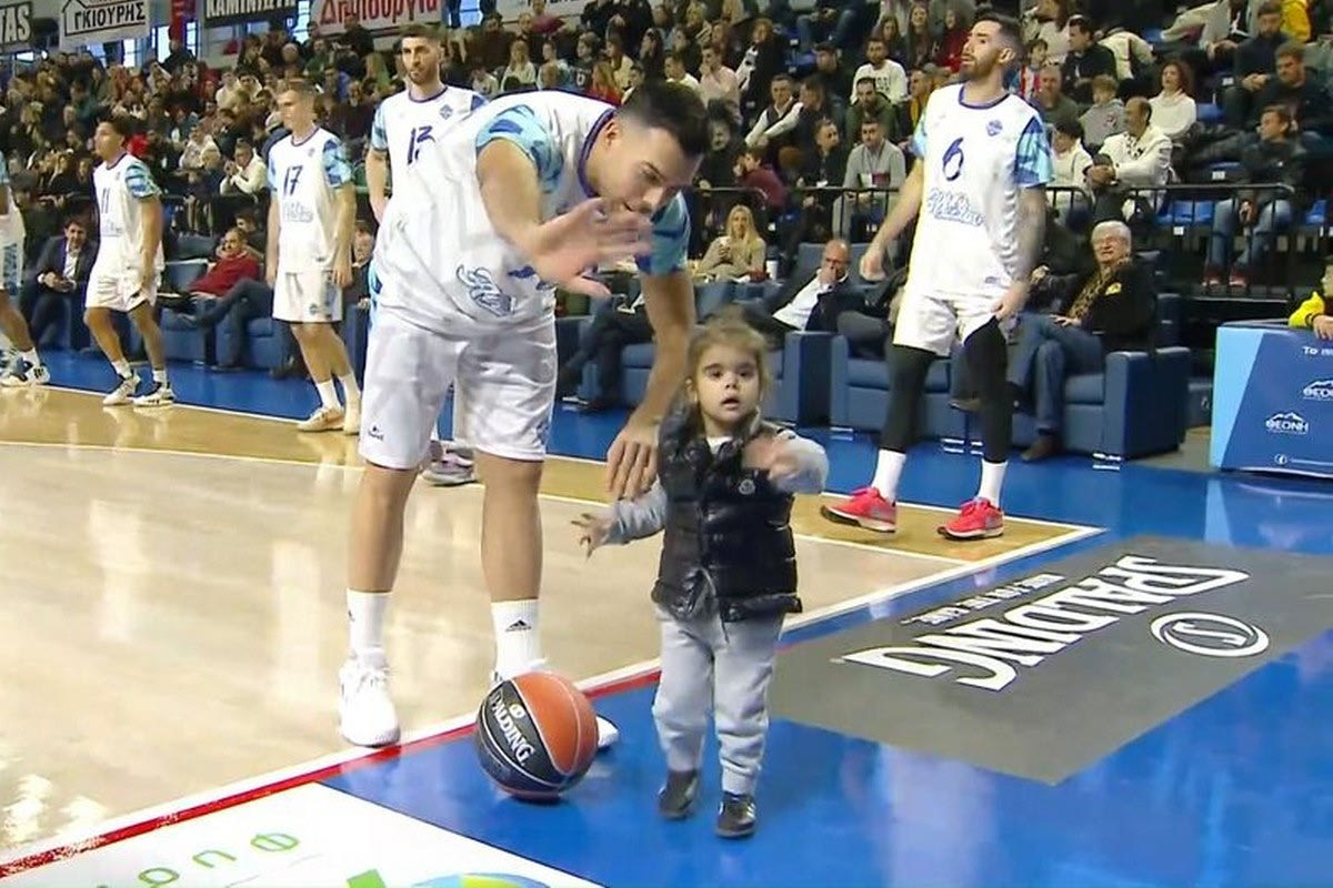 Προθέρμανση με την κόρη του ο Κώστας Σλούκας στο All-Star Game της Καρδίτσας