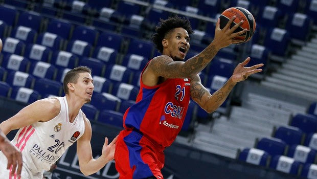 Με τον Μάικ Τζέιμς και τον Γουίλ Κλάιμπερν να πατούν το γκάζι από τη δεύτερη περίοδο κι έπειτα (πήραν την σκυτάλη από τον Τόρνικε Σενγκέλια των 11 πόντων στην πρώτη), η ΤΣΣΚΑ Μόσχας άλωσε την έδρα της Ρεάλ Μαδρίτης (96-89), εδραιώθηκε στην πρώτη τετράδα της κατάταξης και έβαλε την ομάδα του Πάμπλο Λάσο σε μπελάδες αναφορικά με την πρόκριση στα playoffs.
