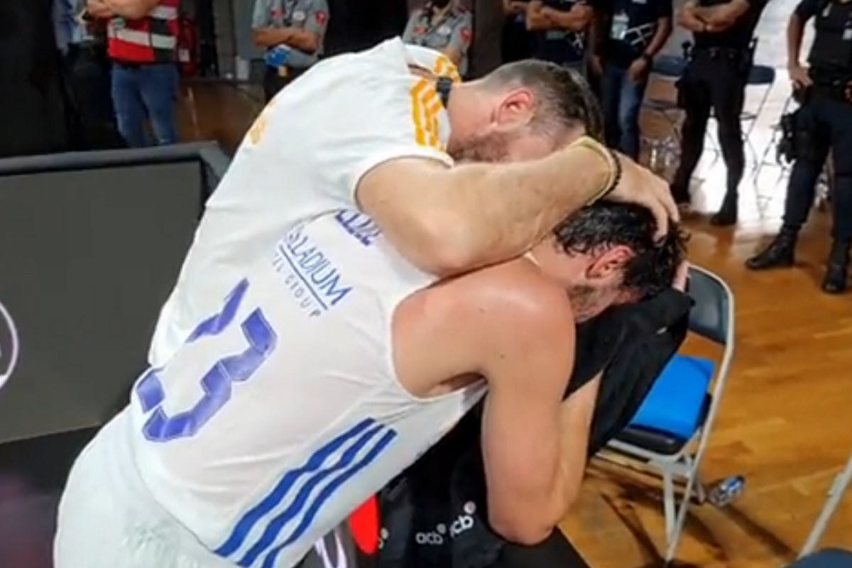 Ο Σέρχιο Γιουλ ξέσπασε σε κλάματα μετά την ολοκλήρωση του τελικού του Super Copa Endesa, με τον Ρούντι Φερνάντεθ και τον Πάμπλο Λάσο να σπεύδουν κοντά του.