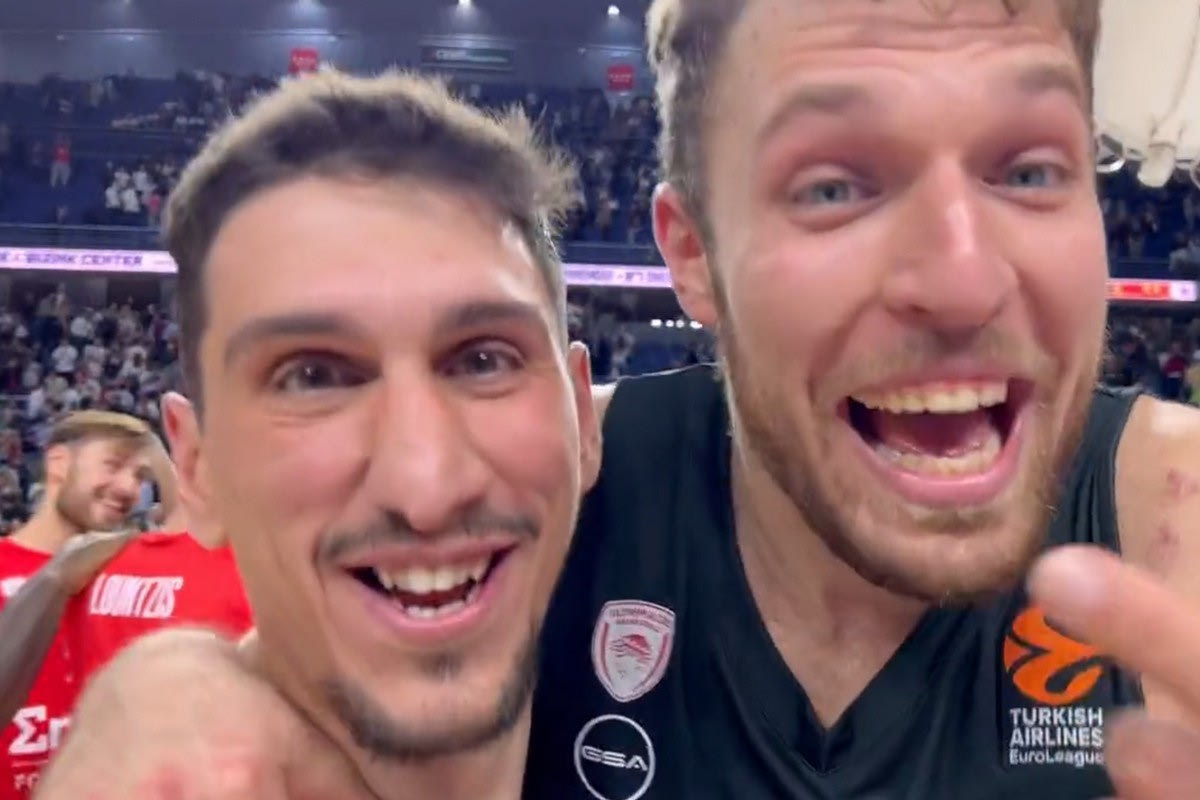 Με τους παίκτες και το τεχνικό επιτελείο να μαζεύονται, ο Βεζένκοβ πήρε αγκαλιά τον Λαρεντζάκη και άρχισε να φωνάζει γελώντας στην κάμερα“Τί έβαλε; Τι έβαλε;” με αφορμή δύο μεγάλα τρίποντα που σημείωσε ο διεθνής γκαρντ στην 4η περίοδο.