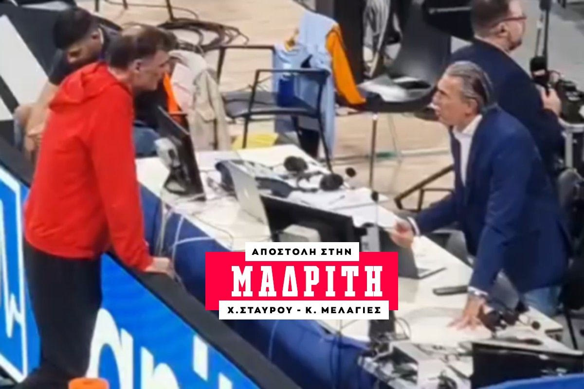 Περίπου 40 λεπτά πριν από την έναρξη του τέταρτου αγώνα της σειράς των playoffs της EuroLeague ανάμεσα στη Ρεάλ Μαδρίτης και στον Ολυμπιακό (1/5, 22:00, Novasports Prime και LIVE από το SPORT24), ο Γιώργος Μπαρτζώκας είχε τετ α τετ με τον Σέρτζιο Σκαριόλο, με τους δύο έμπειρους προπονητές να “τα λένε” πριν από το Game 4 στη Movistar Arena.