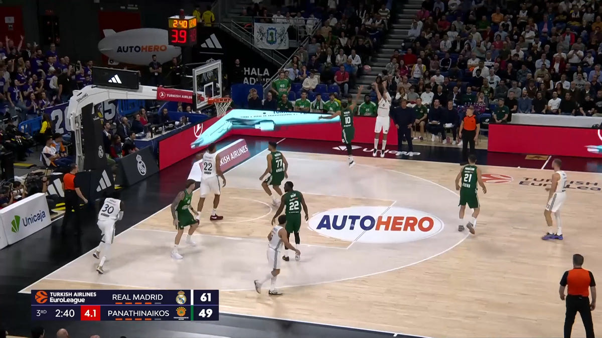 Σε εκείνη την γωνία βρισκόταν συνήθως ο Αλμπέρτο Αμπάλδε, που τελείωσε τον αγώνα με 13 πόντους με 3/4 τρίποντα. Και ήταν τα δικά του σουτ που βοήθησαν την Ρεάλ να ξεφύγει στο σκορ στην τρίτη περίοδο και να καθαρίσει ουσιαστικά το παιχνίδι. Ιδού ένα παράδειγμα: