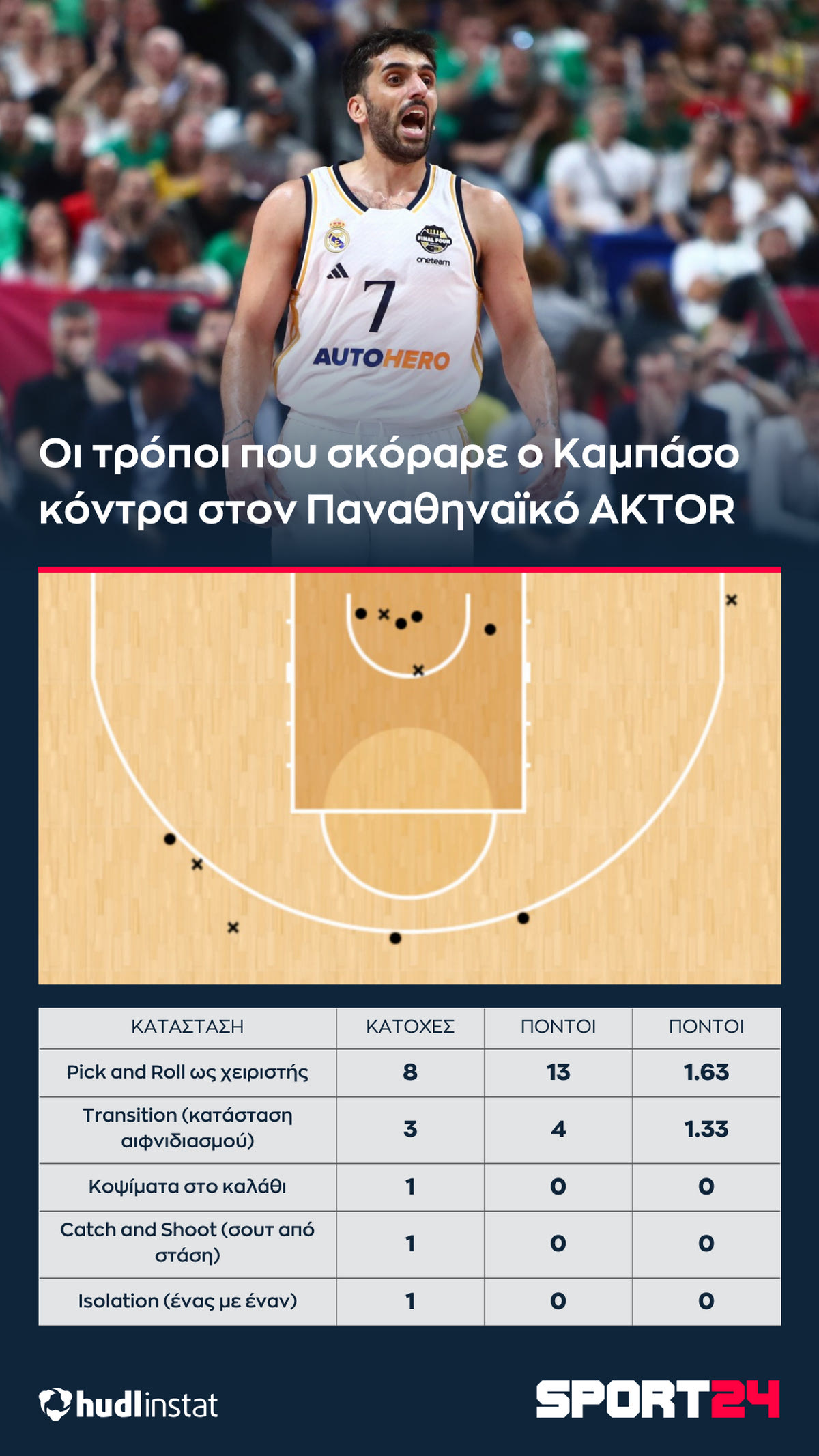 Οι 32 πόντοι που έδωσε ο Καμπάσο και o τρόπος που η Ρεάλ εξέθεσε την άμυνα των “πρασίνων” Pick and Roll