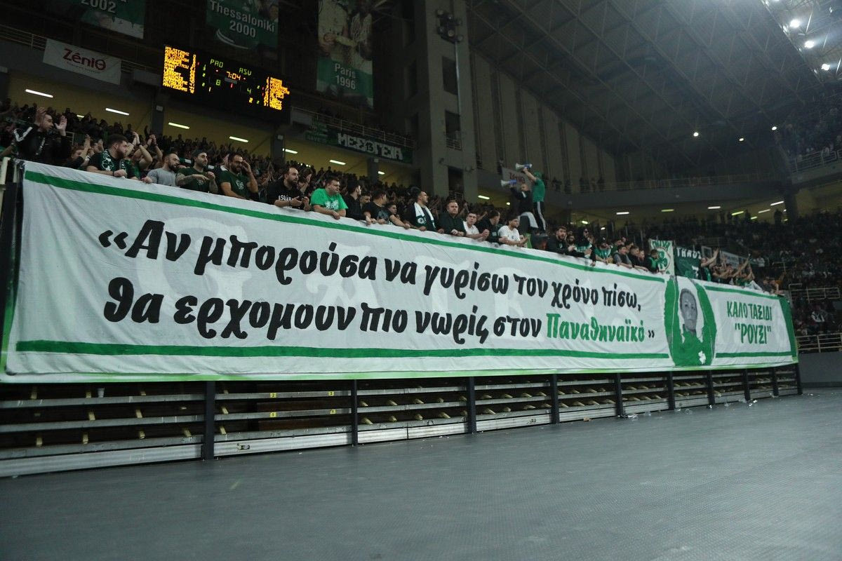 Οι φίλαθλοι του Παναθηναϊκού που βρέθηκαν στο κλειστό του ΟΑΚΑ για την αναμέτρηση με την Βιλερμπάν τίμησαν τη μνήμη της Ρούξι Ντουμιτρέσκου που έφυγε από τη ζωή σε ηλικία 46 ετών με πανό και συνθήματα.