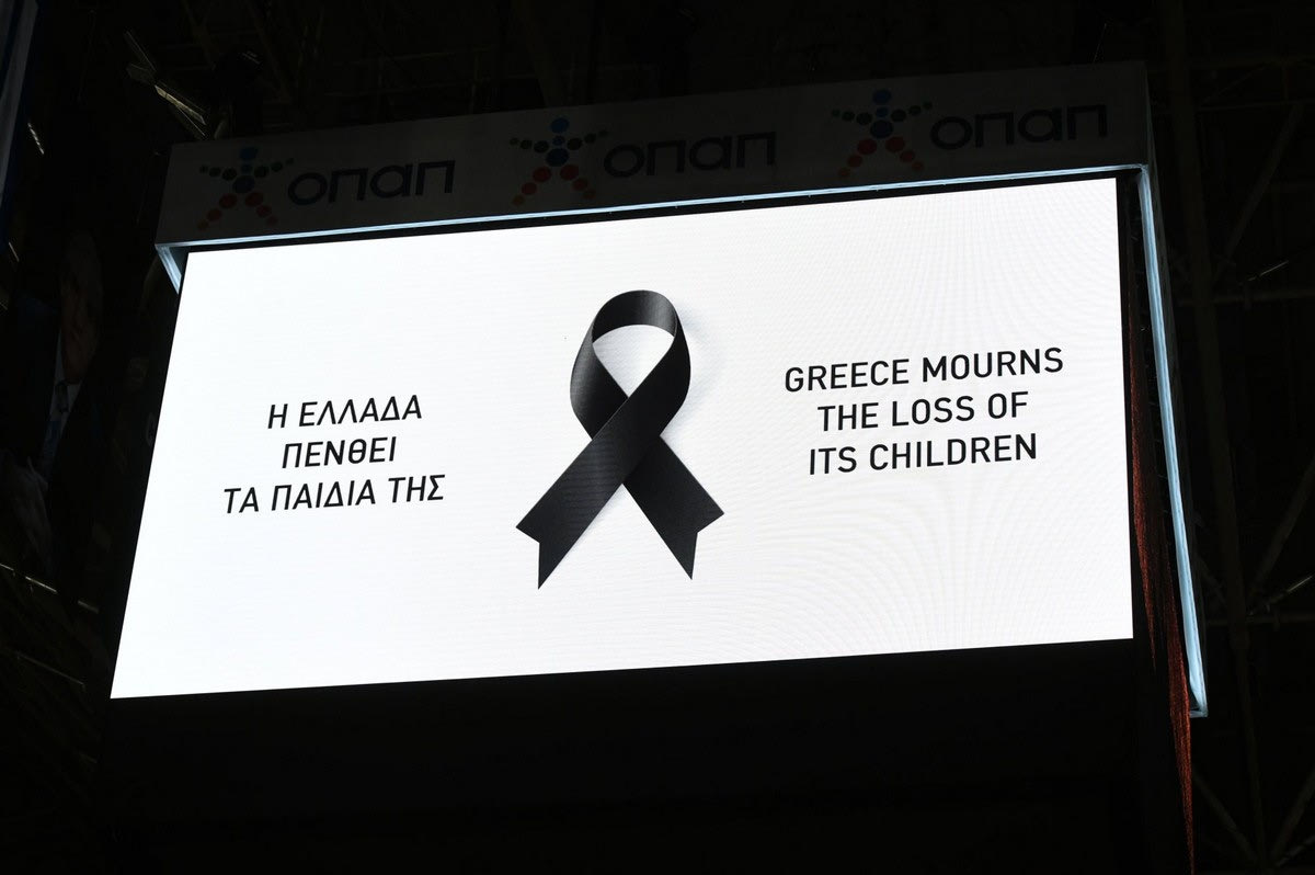 Θρήνος στο ΟΑΚΑ για τα θύματα του σιδηροδρομικού δυστυχήματος στα Τέμπη, με "εκκωφαντική" ενός λεπτού σιγή πριν από τον αγώνα του Παναθηναϊκού με την Αναντολού Εφές.