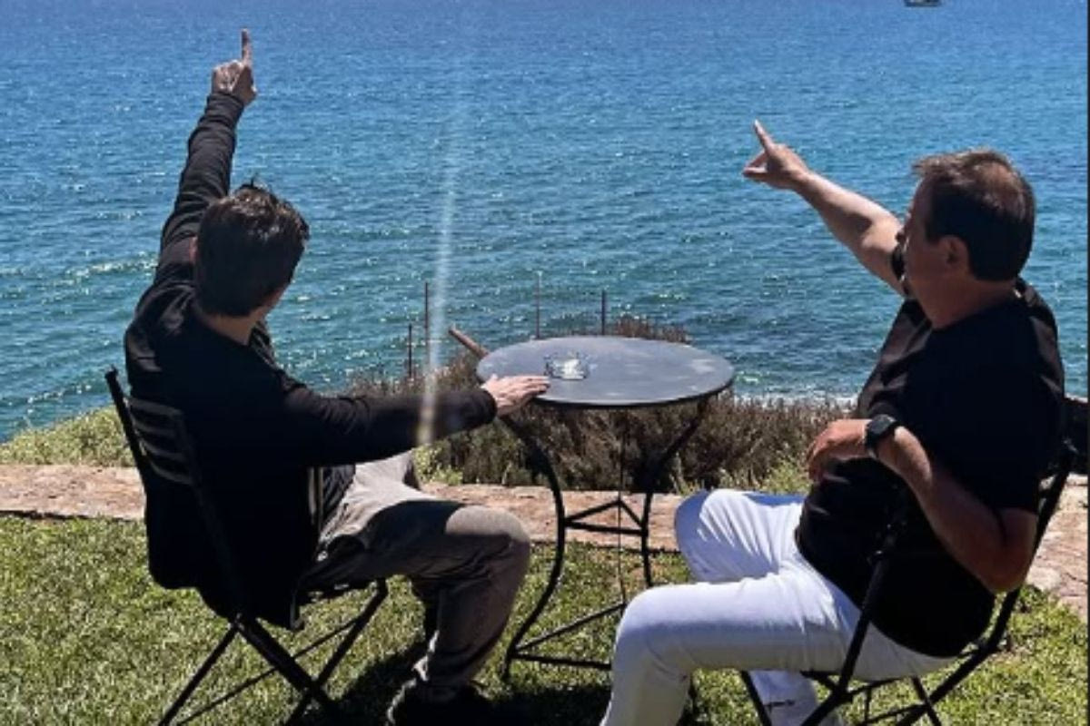 Στη συνέχεια οι δύο άντρες πόζαραν και συνέχεια έβγαλαν μια φωτογραφία δείχνοντας προς τον ουρανό.