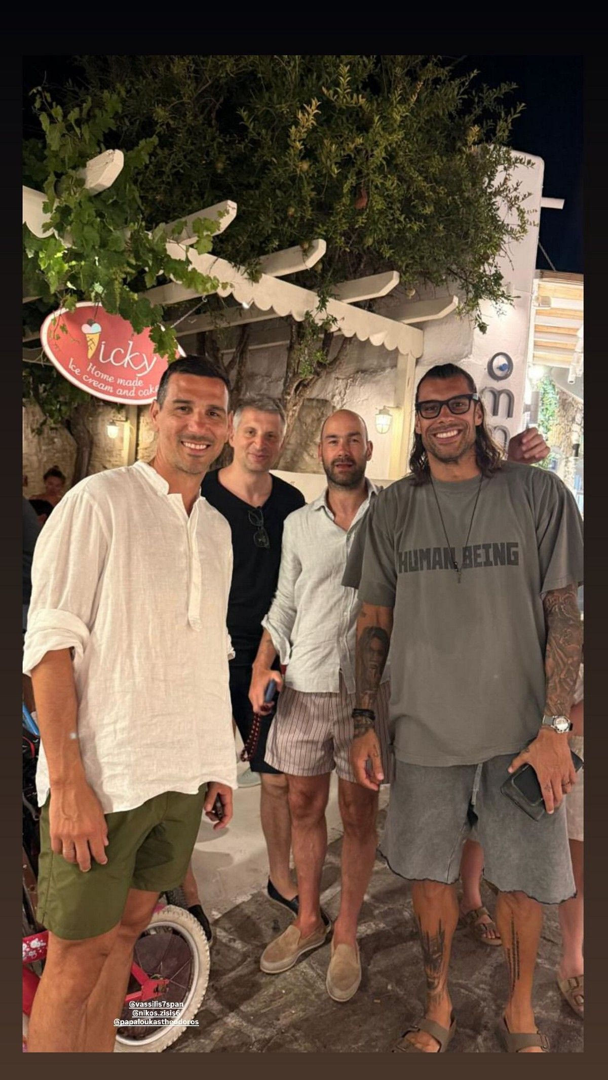 Ο Γιώργος Πρίντεζης, ο Βασίλης Σπανούλης, ο Θοδωρής Παπαλουκάς και ο Νίκος Ζήσης συναντήθηκαν στο γραφικό κυκλαδίτικο νησί και φυσικά, η στιγμή απαθανατίστηκε με μια φωτογραφία που έχει ήδη γίνει viral.