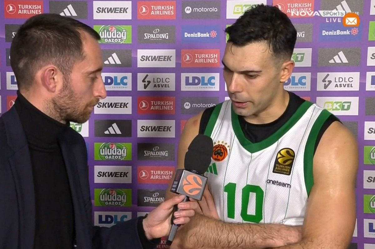Θέλω να πω κάτι άλλο, εκτός από το μπάσκετ. Σήμερα στην Ελλάδα κανείς δεν νοιάζεται για το μπάσκετ. Σήμερα είμαι πολύ περήφανος που είμαι Έλληνας. Πέντε ή έξι εκατομμύρια Έλληνες βγήκαν στους δρόμους. Σήμερα ήταν μια ιδιαίτερη ημέρα για εμάς γιατί συμπληρώθηκαν δύο χρόνια από αυτό το δυστύχημα που συνέβη με τα τρένα. Θέλω να πω ότι όλη η Ελλάδα είναι στο πλευρό των οικογενειών των θυμάτων. Είμαι περήφανος”.