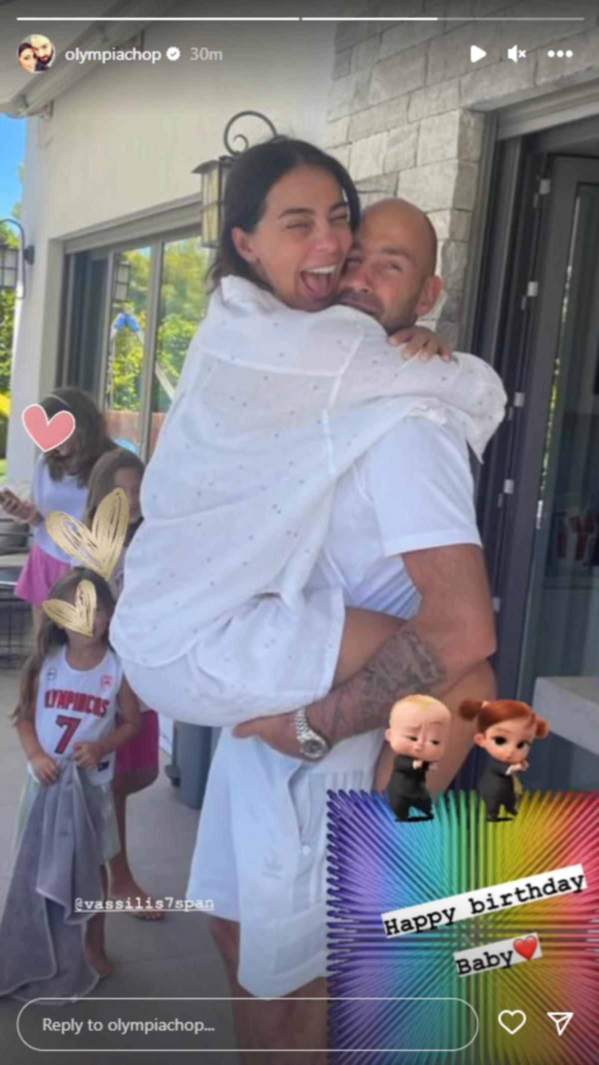 Η Ολυμπία "πνίγει" τον Βασίλη Σπανούλη με την αγκαλιά της και του εύχεται για τα γενέθλιά του