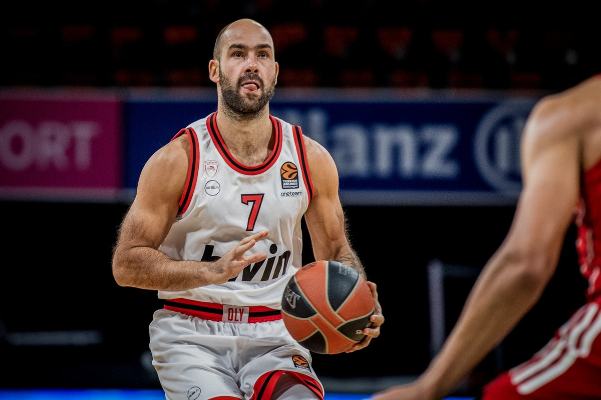 Ο Βασίλης Σπανούλης με τη φανέλα του Ολυμπιακού σε ματς της Euroleague (24 Οκτωβρίου 2020)