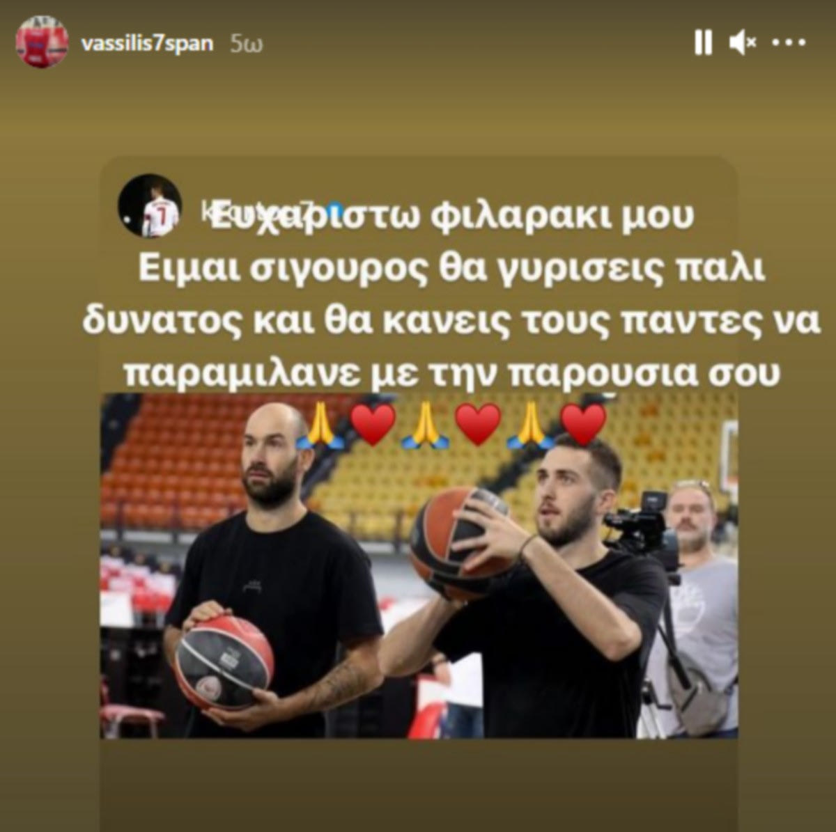 Λίγες ώρες μετά από το “ευχαριστώ” του Κώστα Φορτούνη, ο Βασίλης Σπανούλης απάντησε στον ποδοσφαιριστή του Ολυμπιακού που τραυματίστηκε σοβαρά πριν από μερικές ημέρες και θα μείνει εκτός δράσης για αρκετούς μήνες.