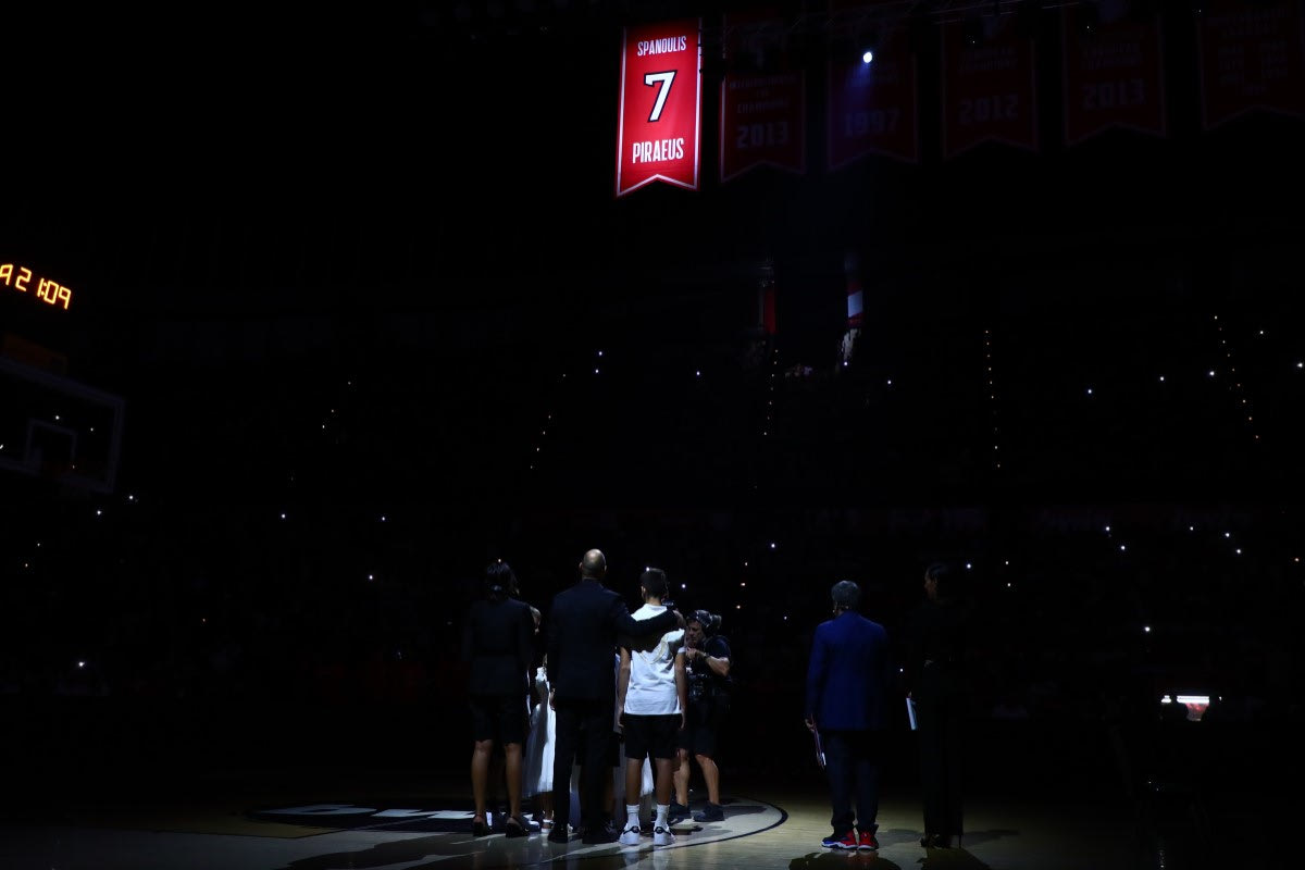 Δείτε το VIDEO με την απόσυρση της φανέλας του Βασίλη Σπανούλη από τον Ολυμπιακό. Στον ουρανό του ΣΕΦ το θρυλικό Νο7.