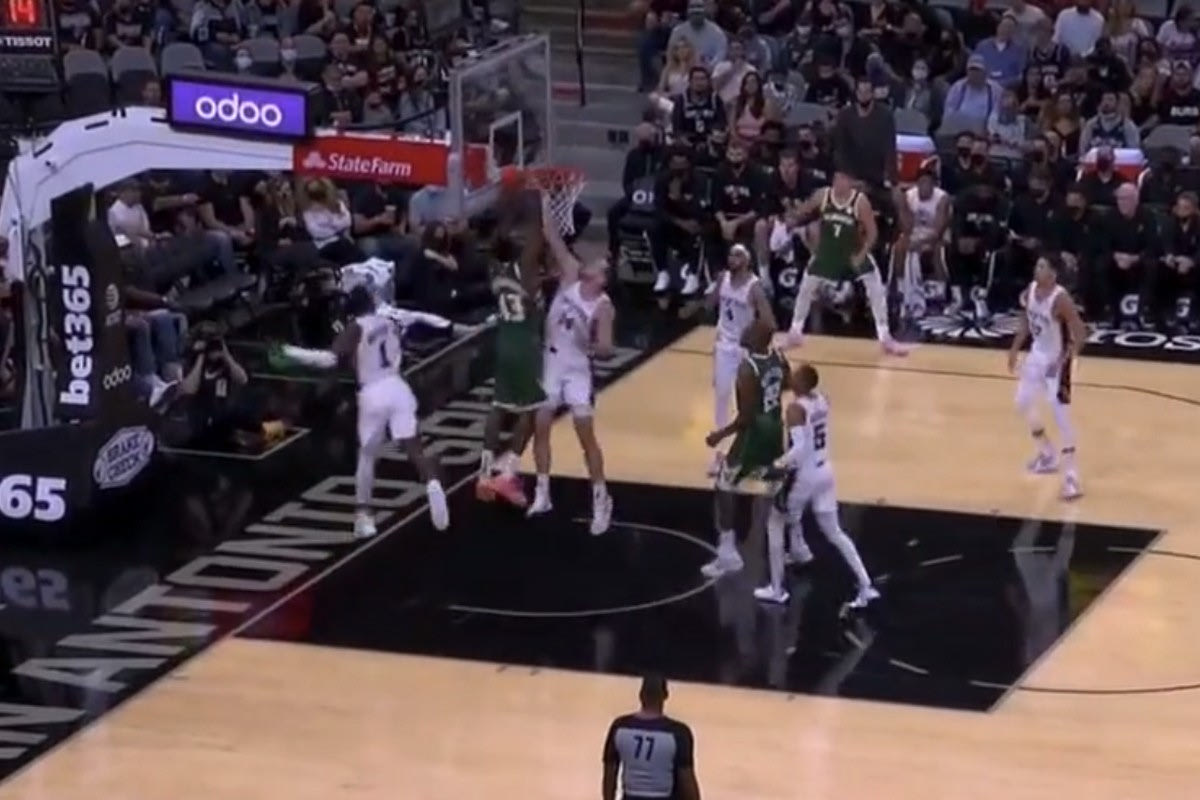 Ο Θανάσης Αντετοκούνμπο ήταν ο πρώτος ψηλός που χρησιμοποιήθηκε από τον πάγκο, καθώς άλλαξε τον Γιάννη στο πέμπτο λεπτό, για να κάνει λίγο αργότερα poster τον σέντερ του Σαν Αντόνιο, Ντρου Γιούμπανκς, καρφώνοντας μετά από την συνεργασία του με τον Κρις Μίντλετον. Ο ψηλός των Σπερς είχε κάνει ένα απίθανο κάρφωμα στον Θανάση, στην φούσκα του Ορλάντο το 2020, αυτή τη φορά όμως από… θύτης έγινε θύμα.