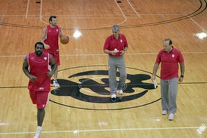 Ο Ολυμπιακός έχει βγει στον αγωνιστικό χώρο, μαζί τους και οι Σαν Αντόνιο Σπερς. Παίζουν όλοι από τους Σπερς, τόσο ο Τιμ Ντάνκαν, ο Μανού Τζινόμπιλι και ο Τόνι Πάρκερ.